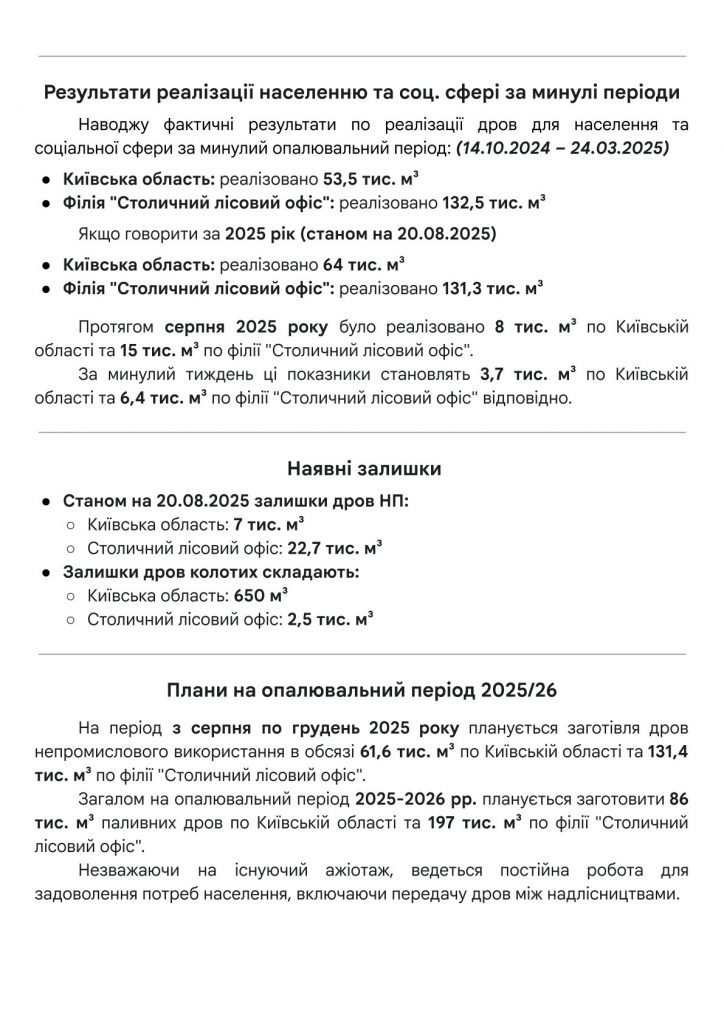 Щодо реалізації населенню та закладам бюджетної сфери деревного біопалива для використання під час осінньо-зимового періоду 2025/2026 року